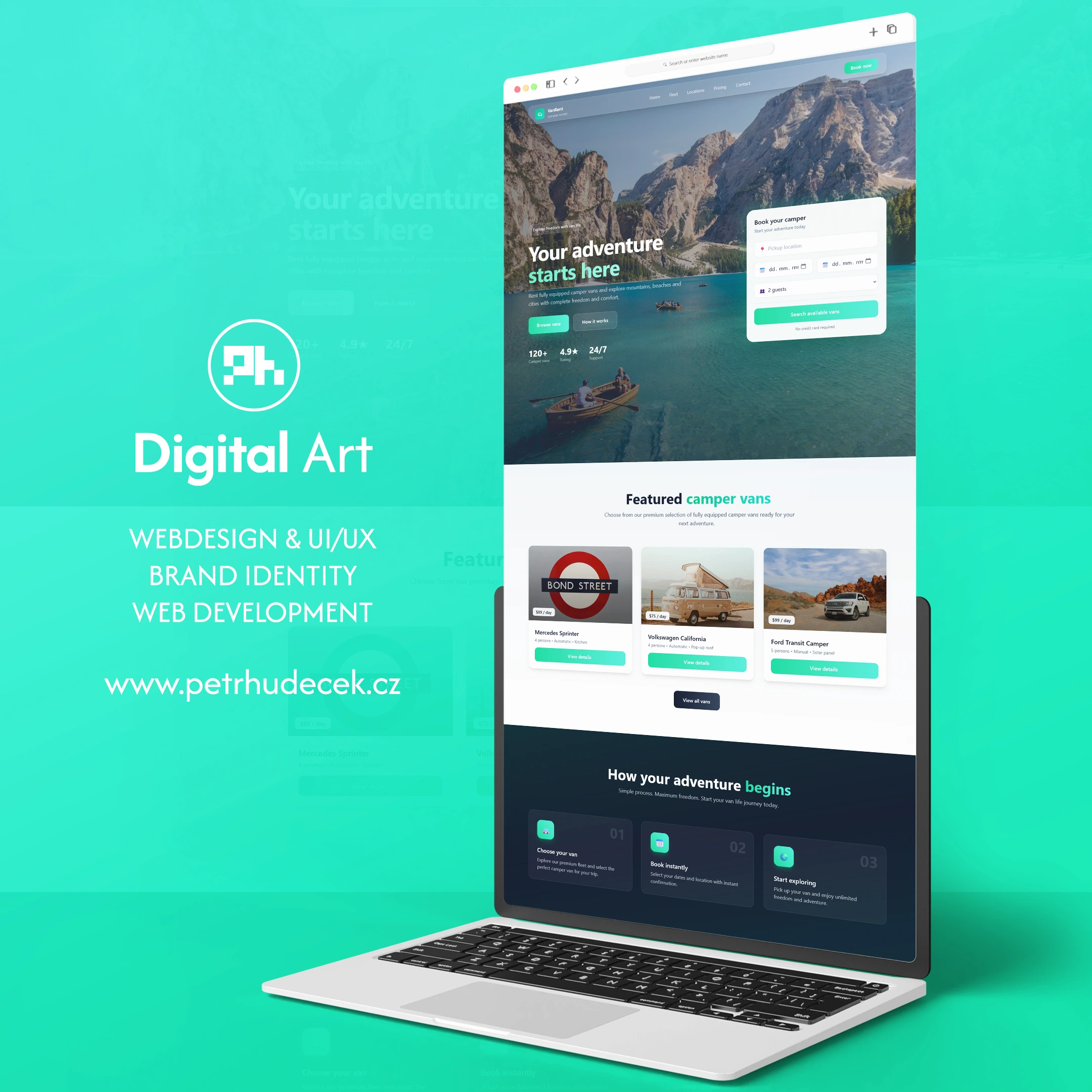 Návrh moderní webové aplikace zaměřené na rezervaci obytných vozů a plánování cestovatelských zážitků. Cílem bylo vytvořit přehledné a intuitivní rozhraní, které uživatele rychle provede procesem výběru a rezervace.